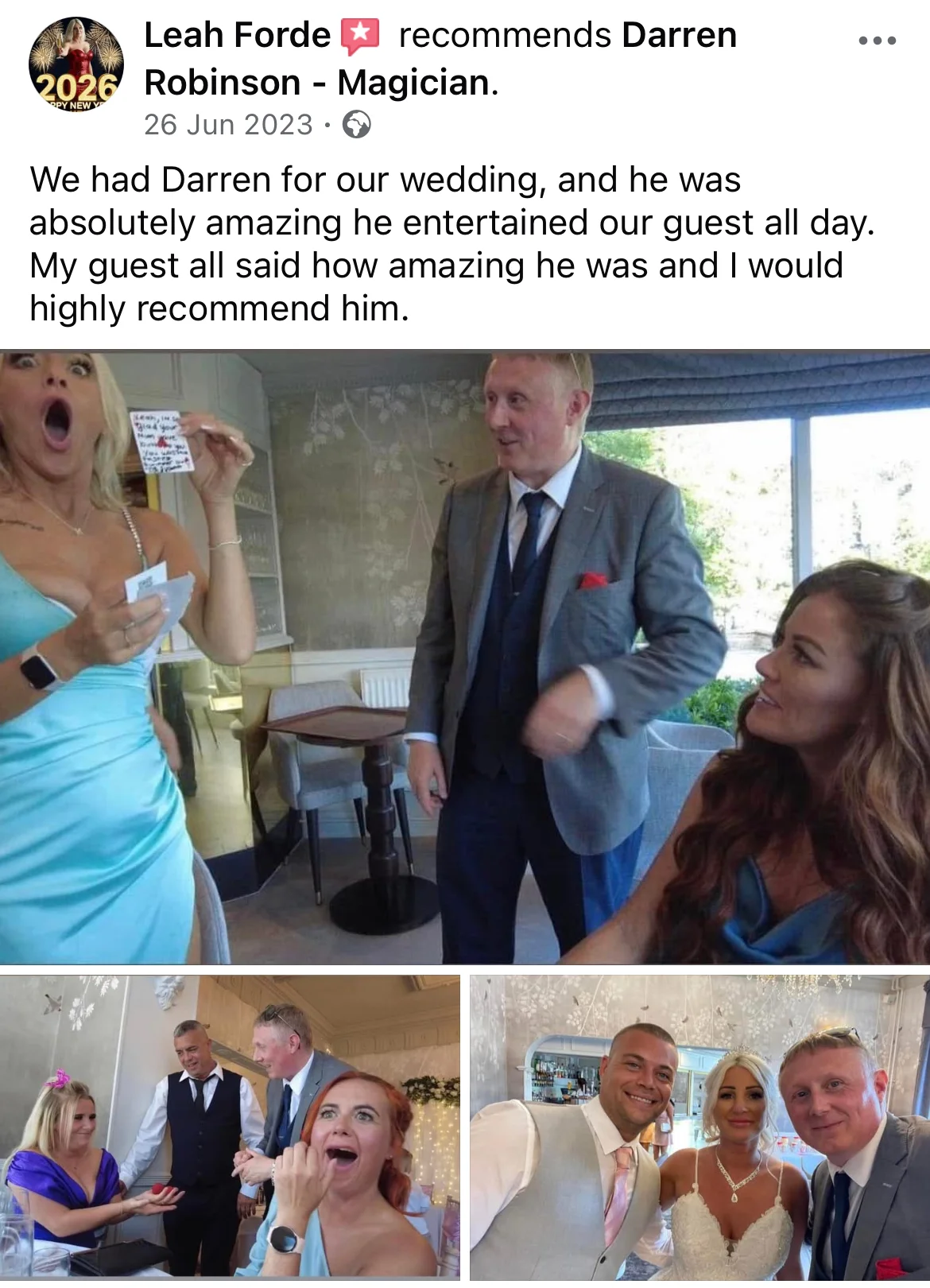 I’m incredibly grateful to have had the opportunity to perform at so many amazing weddings and events. Time and time again, couples and event organisers tell me how the magic helped break the ice, brought different groups together, and added an extra layer of fun and surprise.